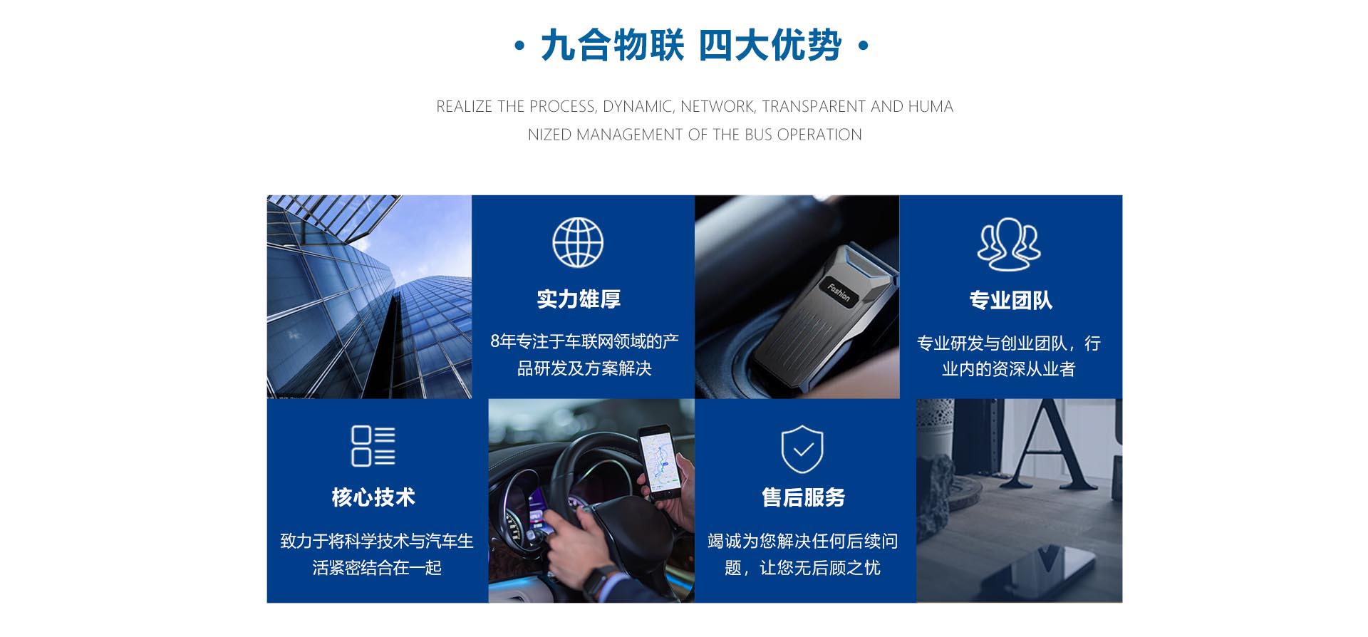 九合物聯(深圳)信息技術有限公司成立于2011年,是一家在車聯網(InternetOfVehicle)領域擁有全部自主知識產權和科技前瞻的創業、創新型高新技術企業,專注于車聯網領域的產品研發、解決方案。九合物聯信息科技有限公司是一家基于網絡數字大數據在車聯網領域應用的科技公司。公司擁有一支與國際水準對接的研發與創業團隊,從業人員多是行業內的從業者,或出身于500強企業,有著豐富和完全實戰型的項目研發及創新經驗。公司的核心競爭力目前主要集中在車聯網領域的核心技術與項目創新兩大領域上,致力于將科學技術與汽車生活緊密結合在一起,不斷優化行業業態,為每一個合作伙伴創造價值。九合物聯信息科技有限公司聚焦“讓有車生活更美好”并有針對性的開發了“融易控”汽車后服務導流平臺,在小額貸、惡意騙貸、汽車后服務(4S)、美容店推廣、私家車出行、后服務導流、后服務導購、保險服務上有一套完整的解決方案。九合物聯信息科...